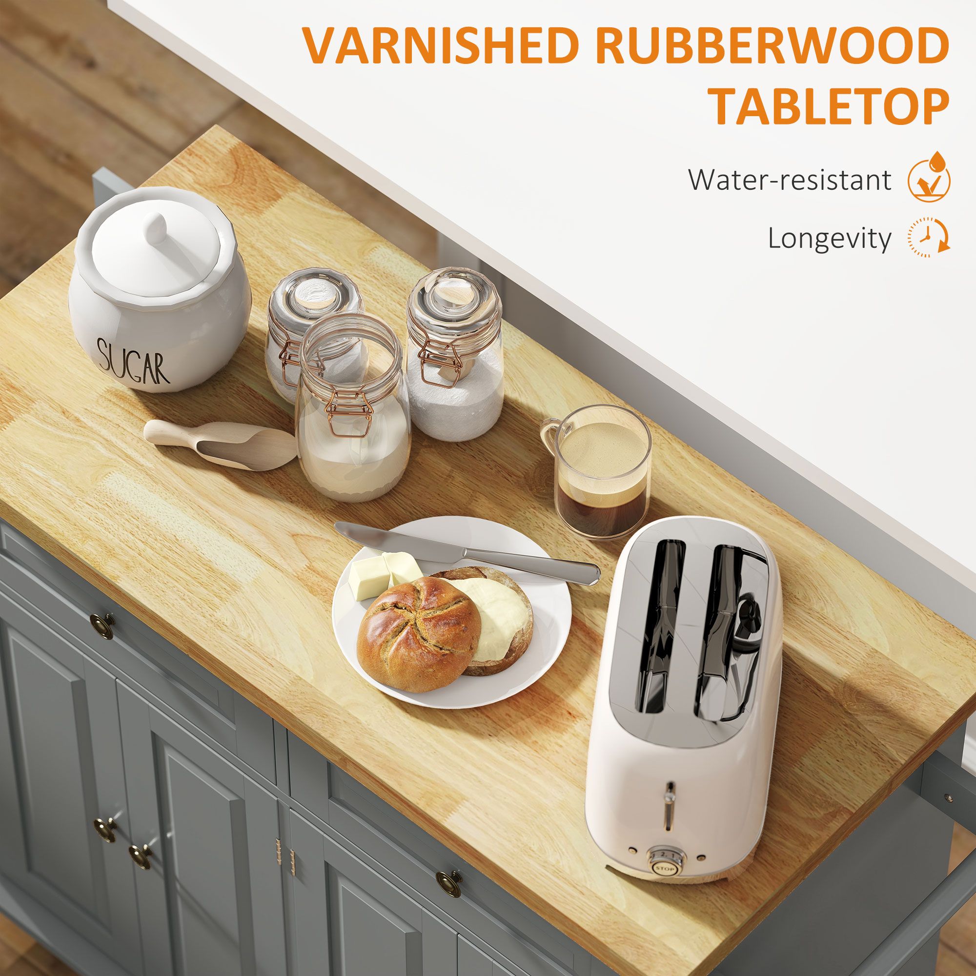 3.- Additional Worktop Space: Need more elbow room or additional counter space for food preparation? The rubberwood countertop gives you enough space and is suitable for chopping and cutting