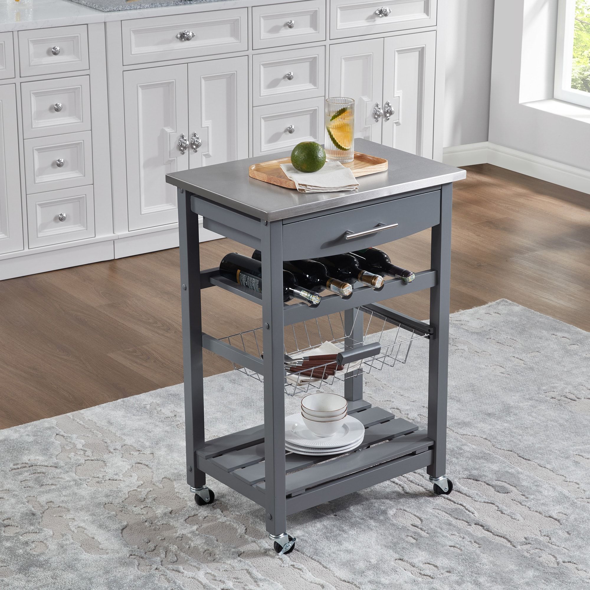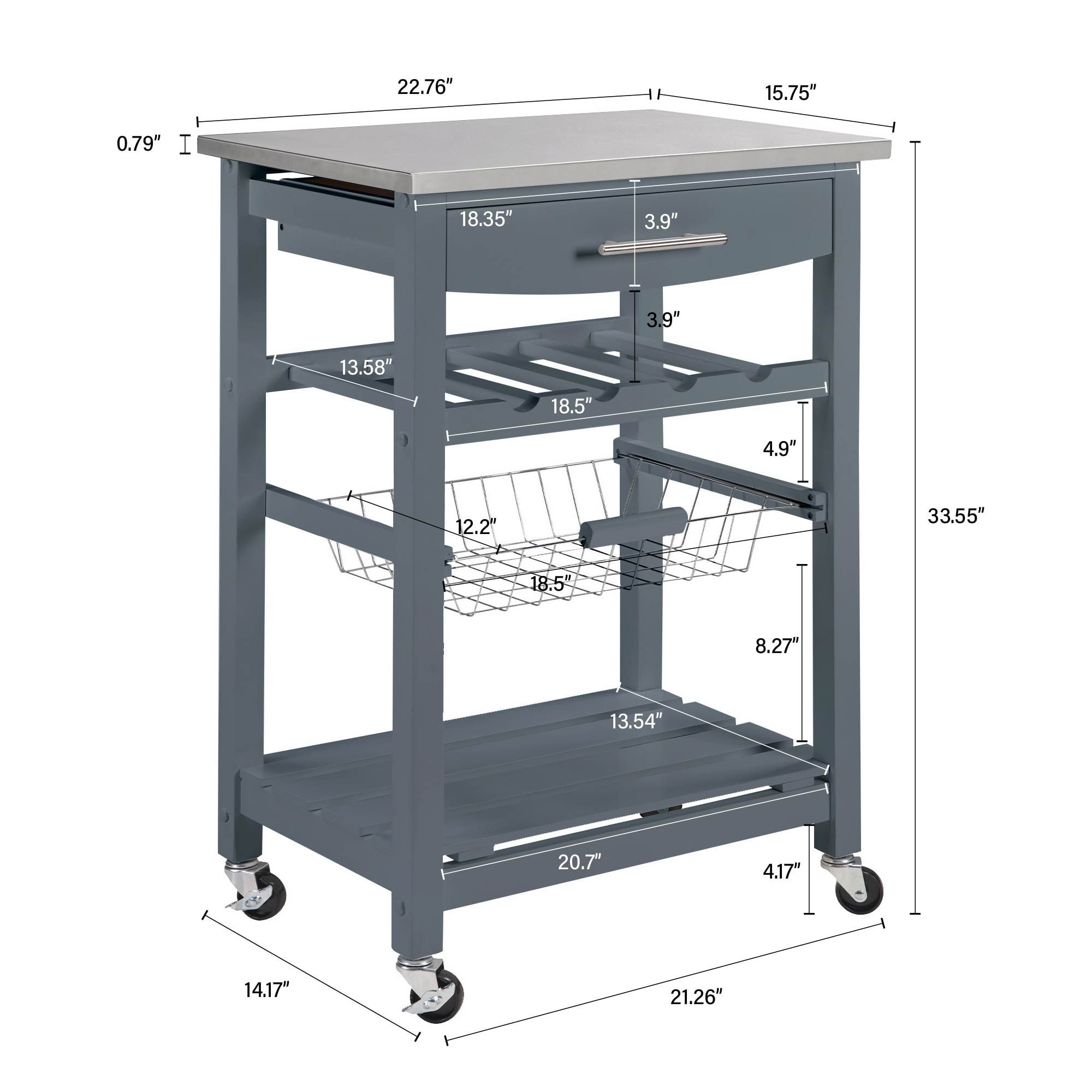 Mobile Rolling Kitchen Island Trolley Serving Cart with Underneath Drawer & Slide-Out Wire Storage Basket - Grey - Wood + Stainless Steel Mobile Rolling Kitchen Island Trolley Serving Cart with Underneath Drawer & Slide-Out Wire Storage Basket - Grey - Wood + Stainless Steel Mobile Rolling Kitchen Island Trolley Serving Cart with Underneath Drawer & Slide-Out Wire Storage Basket - Grey - Wood + Stainless Steel Mobile Rolling Kitchen Island Trolley Serving Cart with Underneath Drawer & Slide-Out Wire Storage Basket - Grey - Wood + Stainless Steel Mobile Rolling Kitchen Island Trolley Serving Cart with Underneath Drawer & Slide-Out Wire Storage Basket - Grey - Wood + Stainless Steel Mobile Rolling Kitchen Island Trolley Serving Cart with Underneath Drawer & Slide-Out Wire Storage Basket - Grey - Wood + Stainless Steel