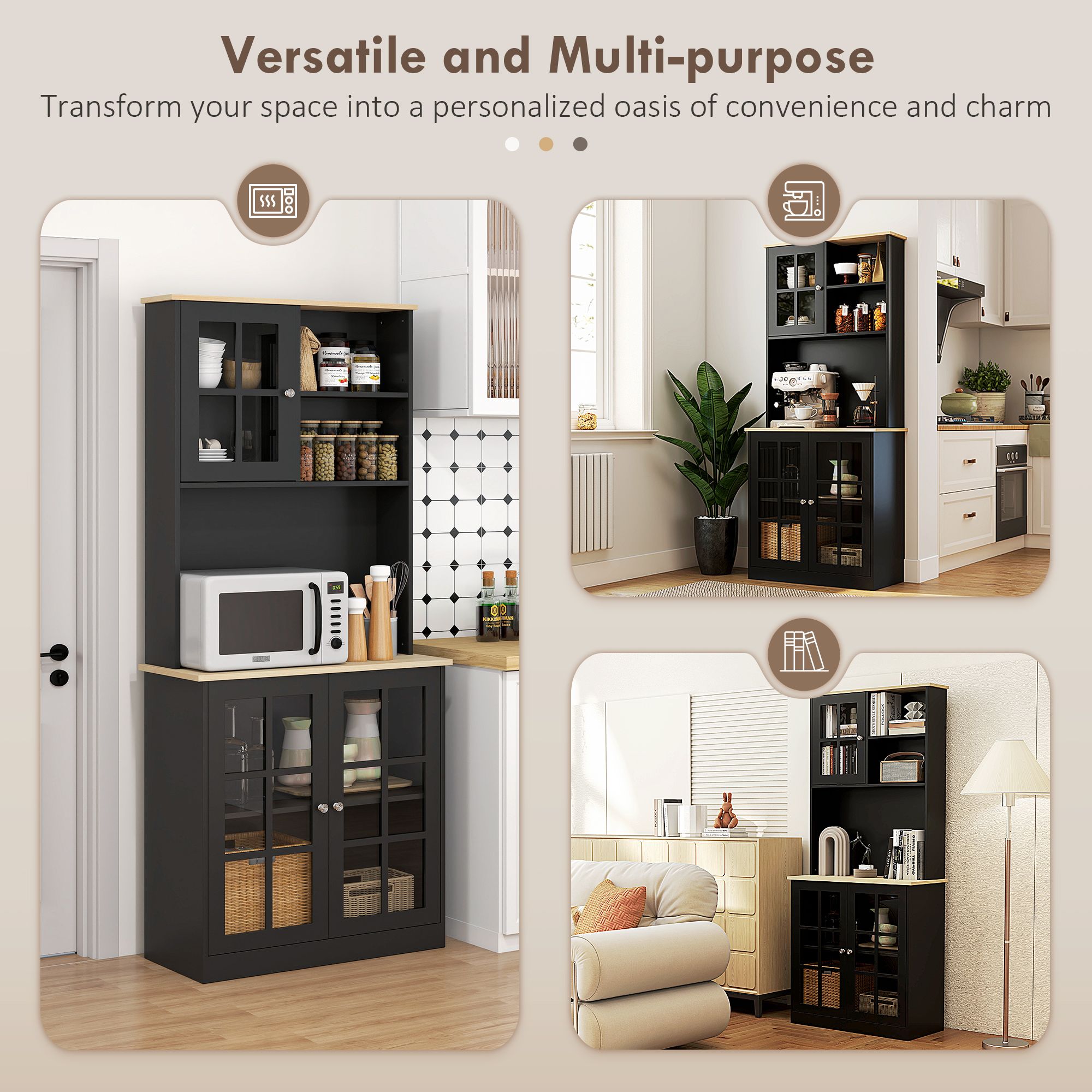 Kitchen Buffet with Hutch, Storage Pantry with 3 Cabinets, 2 Open Shelves and Large Countertop, Black - Black Kitchen Buffet with Hutch, Storage Pantry with 3 Cabinets, 2 Open Shelves and Large Countertop, Black - Black Kitchen Buffet with Hutch, Storage Pantry with 3 Cabinets, 2 Open Shelves and Large Countertop, Black - Black Kitchen Buffet with Hutch, Storage Pantry with 3 Cabinets, 2 Open Shelves and Large Countertop, Black - Black Kitchen Buffet with Hutch, Storage Pantry with 3 Cabinets, 2 Open Shelves and Large Countertop, Black - Black Kitchen Buffet with Hutch, Storage Pantry with 3 Cabinets, 2 Open Shelves and Large Countertop, Black - Black